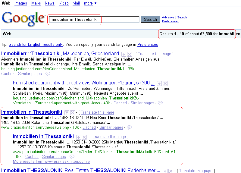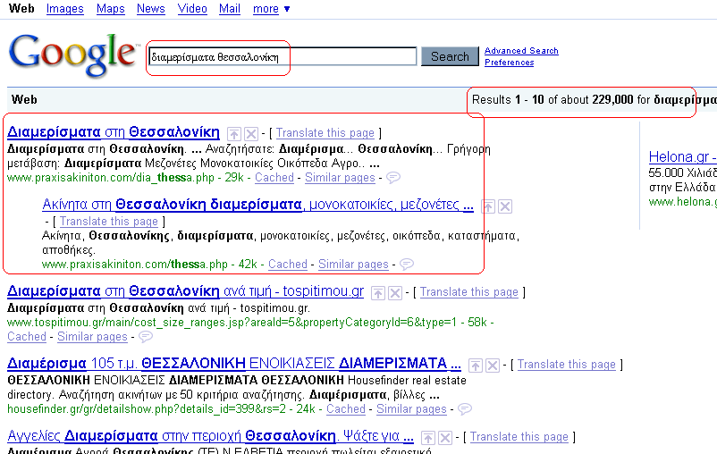 Σχεδόν σε κάθε αναζήτηση ακινήτων η ιστοσελίδα ανταποκρίνεται άμεσα βγαίνοντας στα πρώτα 10 αποτελέσματα. Αυτό ισχύει ιδιαίτερα για αναζητήσεις διαμερισμάτων στη Θεσσαλονίκη και στην Αθήνα.