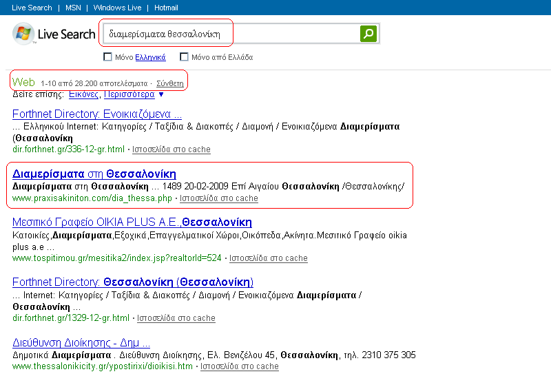 Είτε κάνετε την αναζήτηση μέσω της μηχανής αναζήτησης της MSN (Live Search)